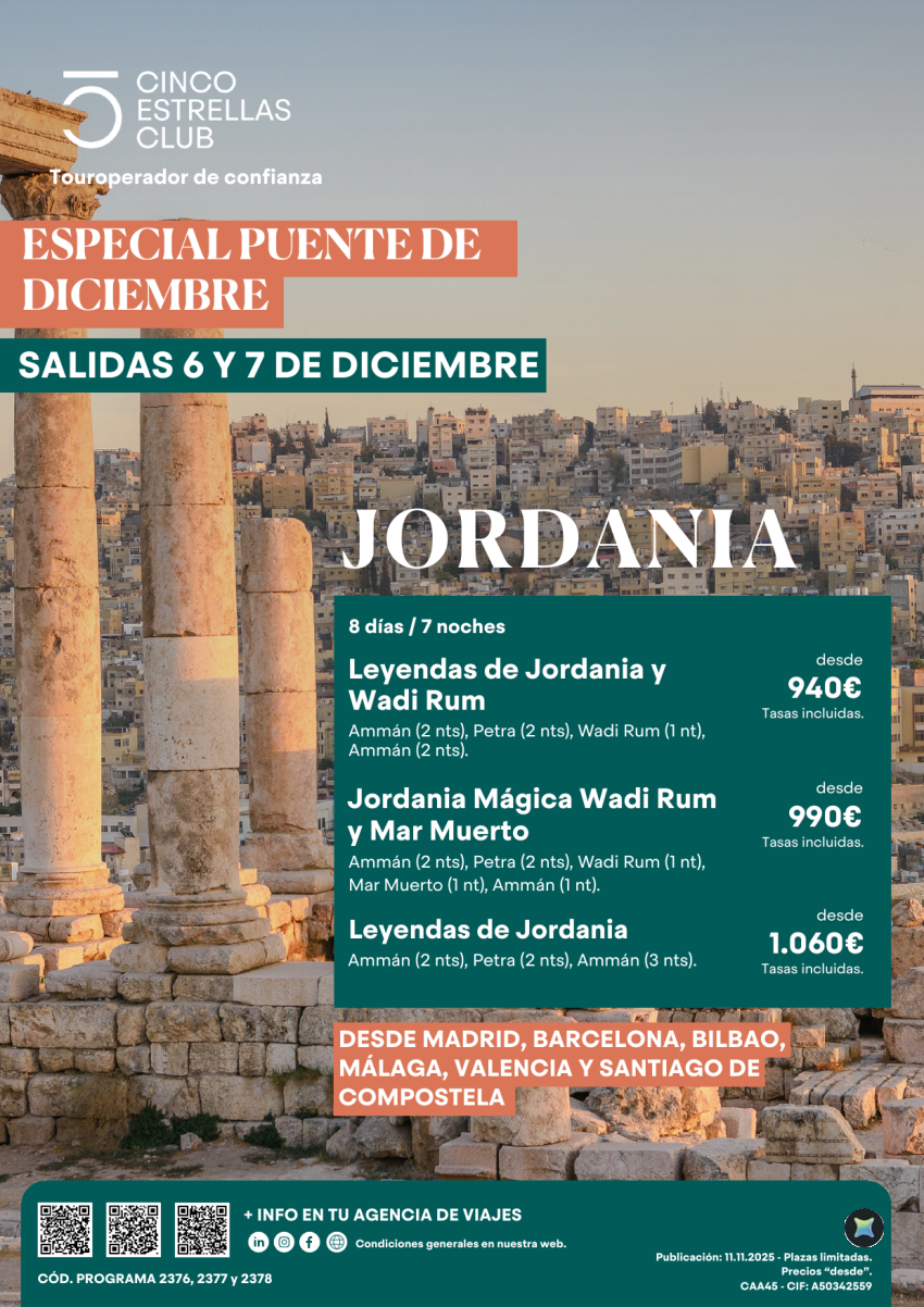 Especial Puente Diciembre Jordania 8ds/7ns salidas 6 y 7 diciembre dsd 940€ dsd Mad,Bcn,Bio,Agp,Vlc, Scq
