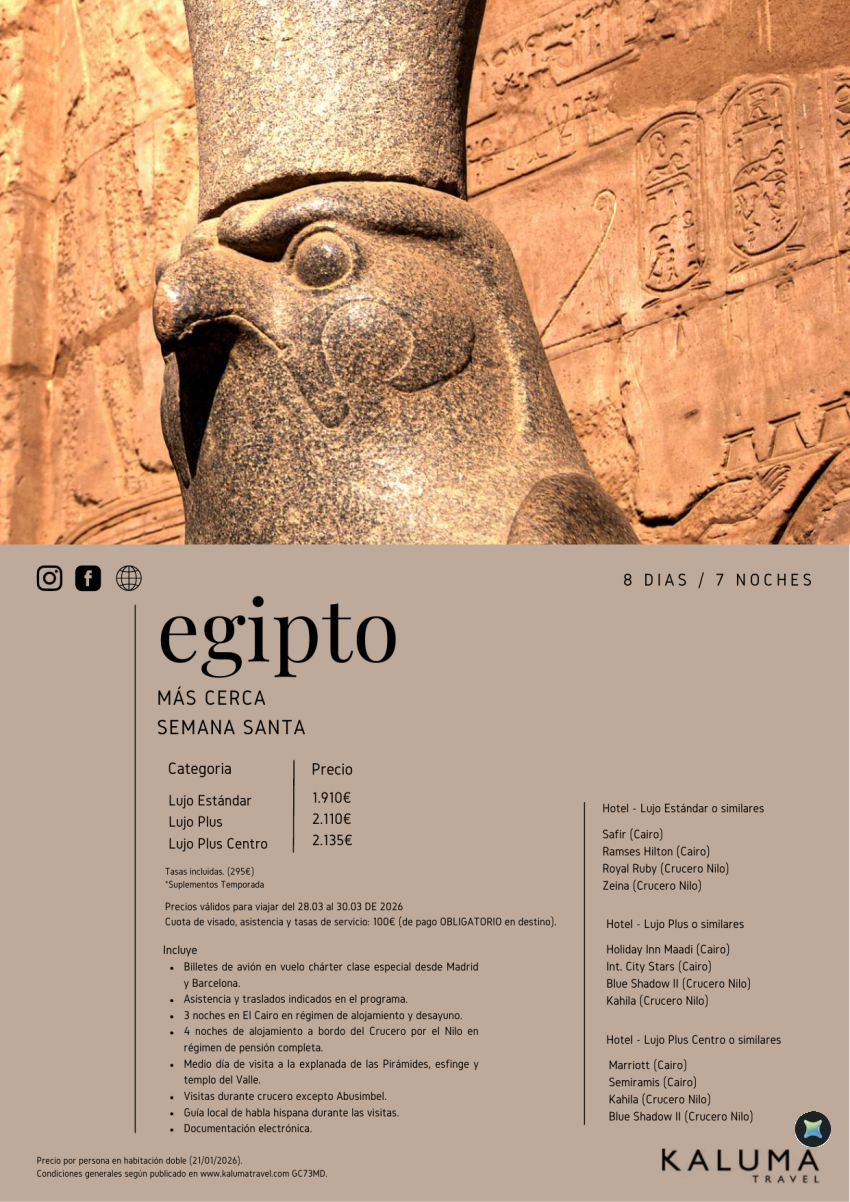 Egipto Más Cerca Semana Santa 8 noches -desde Barcelona y Madrid desde 1.910 €